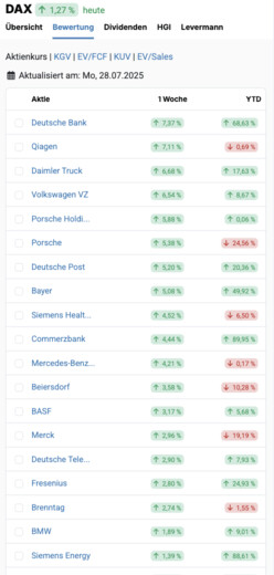 Die TecDAX Finanzen der Einzelwerte kannst Du auf der Seite Bewertung analysieren. Dort findest Du alle Informationen zu Aktienkursen, Bewertungen der TecDAX Einzelwerte (KGV, EV/FCF, KUV & EV/Sales) und Analysen gemäß der Dividenden-, High-Growth- und Levermann-Strategie.